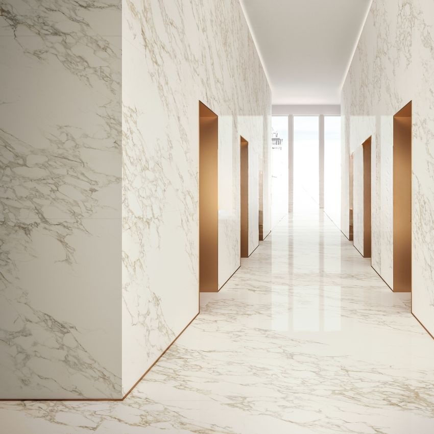 Gạch nhập khẩu Italia 120×120 Calacatta Gold là lựa chọn lý tưởng cho nhà ở, biệt thự, khách sạn, sảnh trung tâm… tạo điểm nhấn đẳng cấp theo phong cách châu Âu hiện đại.
